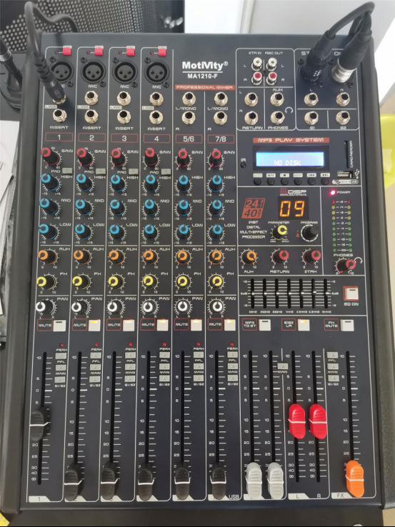 音箱所配置的功放为H2和H3,音频处理器为DP8080。在此,更值得一提的是MA-1610F调音台的加入。它高水平的连接性,确保传输信号的完整无损,加上内置99种DSP效果音效,无论是演出还是会议,都能应报告厅即时之需。