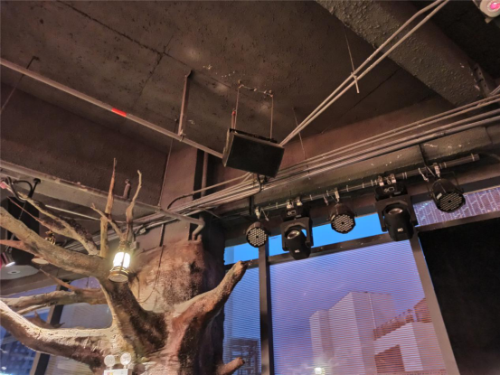 餐吧内还垂直或水平吊挂安装了8只AT-10补声音箱,用于对固定点位进行补声,弥补高频衰减。可使餐吧内的声压级更加均匀,达到声音萦绕全场的效果,更让宾客在音乐的熏陶下舒缓身心。