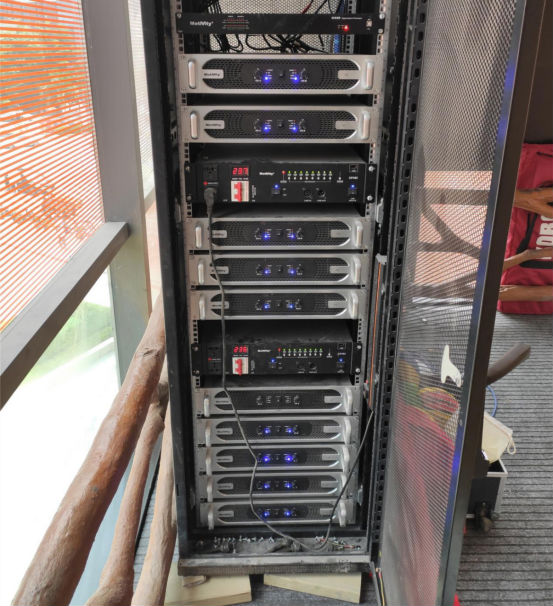 音箱的优质发声与高效运行,当然也离不开其他设备的配合。这里配置了H系列功放(H5、H7、H3、H2),驱动对应的音箱发出声音;CP382电源时序器为系统电源的使用实现了智能控制;DX8.8数字音频处理器的加入,能够提供精确的音频处理、优质的声音效果和稳定可靠的运行能力,使得整个扩声系统更简洁、更高效、更可靠!