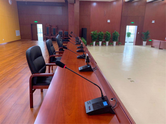 法院审判庭固然以审判和会议讨论为主,对语音清晰度要求比较高,所以增设了一套MotiVity的数字手拉手会议系统,包含:MT1000S纯讨论型会议主机、MT480VC鹅颈话筒1支、MT480VD鹅颈话筒8支。会议主机具有反馈抑制功能,可以避免声音回授、啸叫的产生,充分保障审判及会议的流畅举行。