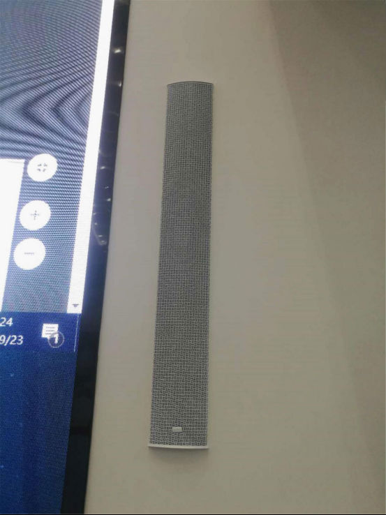 主扩声安装的是PAL-36线性阵列音柱,它既能保证良好的声学特性,又能提供协调的视觉美:它的多个扬声器单元,经精确设计排列在细长垂直的箱体内,使发出的声波能向远处和两边扩散,达到声音投射距离远,声场宽广均匀的效果;且特别定制为白色,流线型箱体设计,壁挂于墙面,与内部装修风格相得益彰。