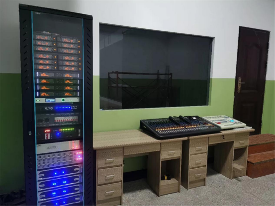 报告厅内配置了一套U-T14无线桌面式会议系统,方便人员进行会议报告时使用。同时,搭配了H系列和C系列功放、MA1210-F调音台、DP8080数字音频处理器、GEQ230均衡器、CP382和SC-802电源时序器,集中在设备房进行管理,既保证高品质的声效输出、保持系统的稳定运行,又实现人员的实时便捷操控。