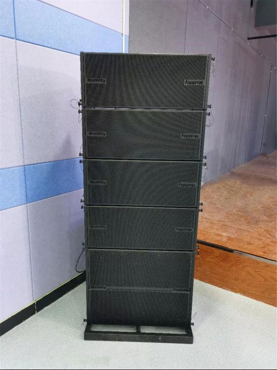 主扩声采用了8只M-10线阵列音箱,配套2只M-25BW超低音箱,分为两组,每组以“4+1”只叠加安装,加入M-25BW田字架实现无缝衔接,落地摆放在舞台两边,并调整一定角度打向观众区。整个阵列能够形成一个连续、等相位的线性声源,使得声场覆盖更均匀。