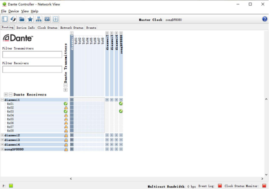 系统传输方式上,考虑现场传输距离大,为了减少长距离带来的声衰减,所以采用Dante传输,由总核心控制机柜上的核心交换机进行管理传输全部的音频信号,并配置了一台SC-802电源时序器控制电源开关。