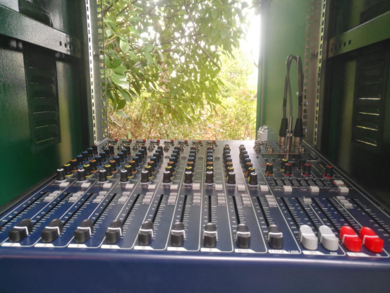 当需要展示灯光秀的时候,只要灯光控台传输信号触发到灯光控制室的电脑,电脑实现自动播放音乐,音频信号就会传输到调音台的输入端位置,从而实现音频的同步输出。