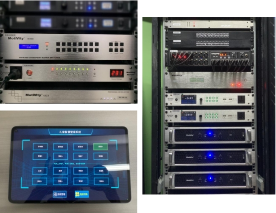 对于整个系统的控制与处理,超凡国际 为其配置了C系列和H系列功放来完成各音箱的驱动;MX88视频矩阵对现场视频源进行切换;2台DP1616处理器对信号进行集中控制与管理;CSZ3中控系统则对SC-902、MEP1000电源时序器进行电源开关管理,以及对MX88视频矩阵进行视频源切换控制,并通过平板一键开关控制,快速便捷。