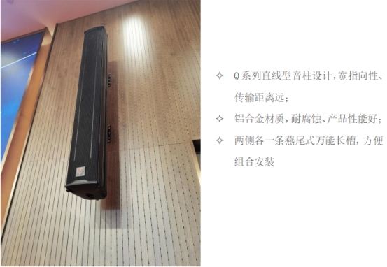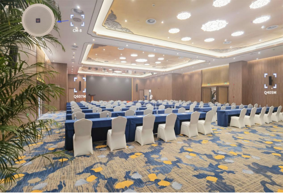 该报告厅扩声系统采用“音柱+吸顶”的先进布局。Q607M音柱担纲主扩声,配合两只NX-312M舞台返听,中后场设计Q405M音柱辅助补声,确保声音覆盖无死角且层次分明。同时,12只CM-8吸顶音箱均匀嵌入观众席上方,为听众带来沉浸式的听觉体验。