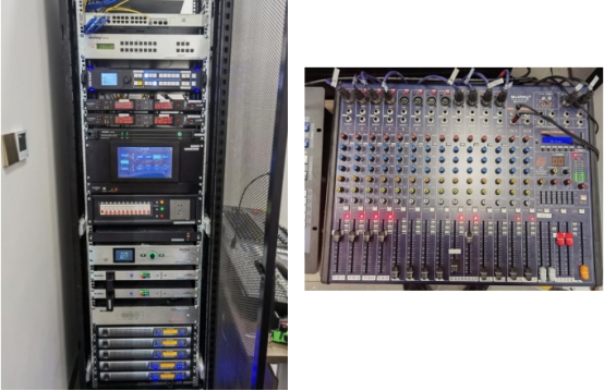 IP网络广播系统需满足楼内背景音乐播放、消防应急播报、高效分控管理等需求。为此,超凡国际 设置了一套IP-8000云网络广播系统,由云广播服务器IP-8002A、管理软件IP-8000Y、网络功放IP-8240N、CL-122FH天花喇叭及AW-830音柱等设备组成。