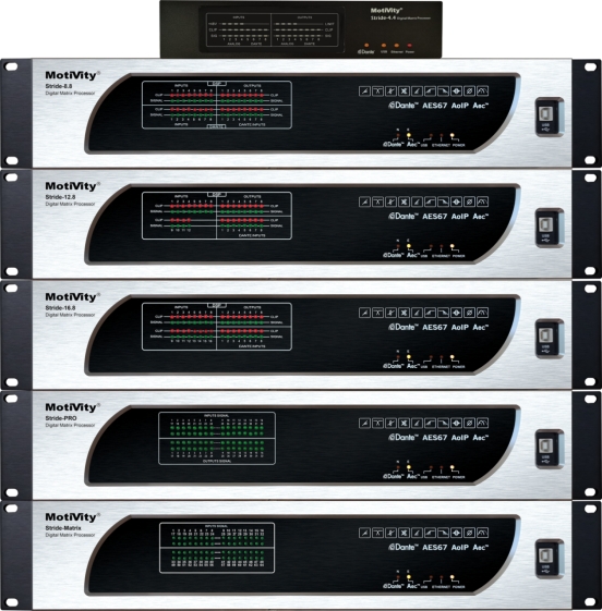 Stride系列网络音频矩阵系统包含:Stride-4.4、Stride-8.8、Stride-12.8、Stride-16.8、Stride-PRO、Stride-Matrix共六款。