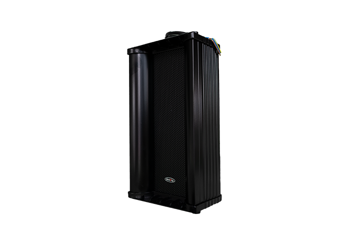 户外防水音柱2单元两分频喇叭,4"低频驱动器;1″高频驱动器音箱具备额定功率切换配接端子,可切换不同功率灵敏度:89dB(±3dB)频率响应:100HZ~20kHZ(-3dB)工作方式:定压输入电压:100V额定功率:15W/10W可选材料:全铝合金尺寸(H×W×D):258mm×151mm×125mm重量:2kg全天候设计,选用防水单元,室内外均宜,寿命长配有安装支架,安装便捷
