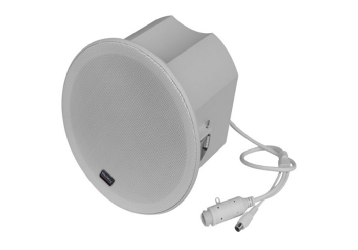 集成数字解码终端及有源天花的一体化网络吸顶音箱,采用Linux系统,DSP软件音频解码方案,通过网络传输16bit CD音质音频信号;ABS塑胶外壳及铁质网罩,支持POE供电,支持接收网络广播系统音频信号;支持远程音量控制、远程升级;支持权限设置、状态管理及回传;