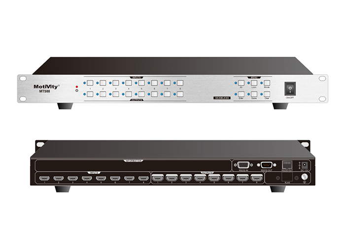 本系列产品是一款专业的4K高清固定式无缝切换矩阵,支持多路HDMI输入,多路 HDMI 输出。输入输出支持 HDMI1.4,且最高输出分辨率为3840x2160@30Hz 。具备多种控制方式,包括双向串口控制、面板按键等控制。具有智能化EDID管理,以确保兼容各种应用场景中的信号源与操作,可应用于多媒体会议室、报告厅、多功能厅、演艺厅、电教室、展览展示、指挥中心等场所;