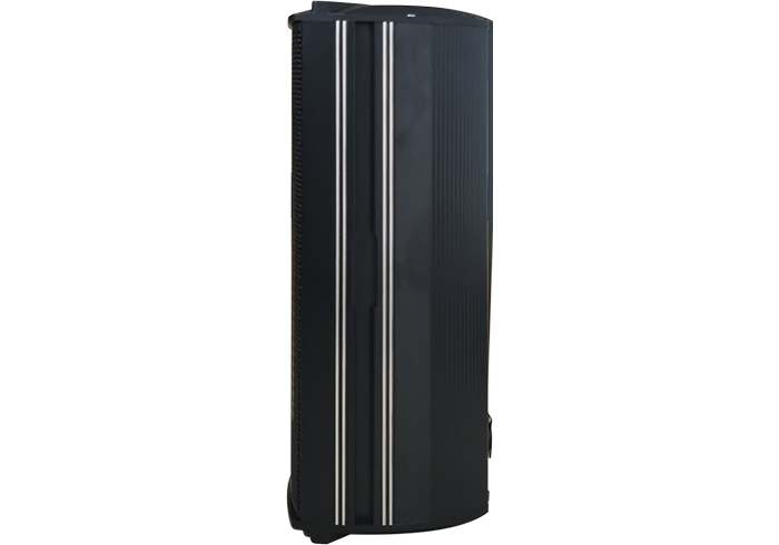 技术参数:3单元内置2分频线性音柱;由2个4.5寸35mm音圈的铁氧体全频单元和1个25mm压缩驱动高音头组成;4.5寸单元使用热压成形的高分子泡沫折环,顺性好,频带宽的特性;灵敏度(1W@1m):90dB;额定功率:180W,节目功率:360W,峰值功率:720W;频率响应:55Hz—19.5KHz;阻抗:4Ω;最大声压级: 113dB@180w (116dB@360w);标称指向性(-6dB):H100°×V100°箱体材质:铝合金箱体尺寸(H×W×D):470mmx140mmx191mm净重:5.5kg配件:含壁挂支架;该系统使用2.5~6mm铝合金挤压拉伸表面处理为喷沙电漆,强度为木质壳件的4.5倍,性能良好。 内部x,y轴多道加强筋使用铝合金型材。 两侧各一条燕尾式万能长槽,延伸向